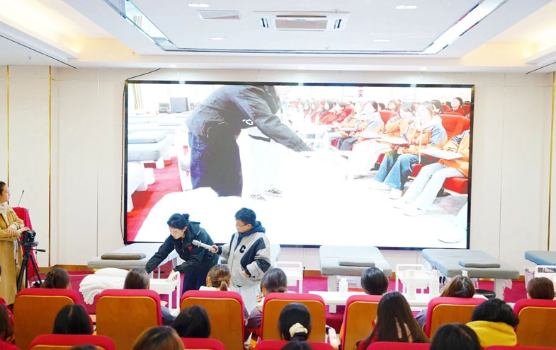 理论过后,张老师随即转入实操演示环节。她以娴熟精湛的手法,现场演示了当前流行的美容技术。每一个步骤的细致讲解,每一种手法的精准展现,都淋漓尽致地体现了“冠军级”的技术水准与对细节的极致追求。台下的同学们目不转睛,深深折服于大师举手投足间所展现的“工匠精神”。