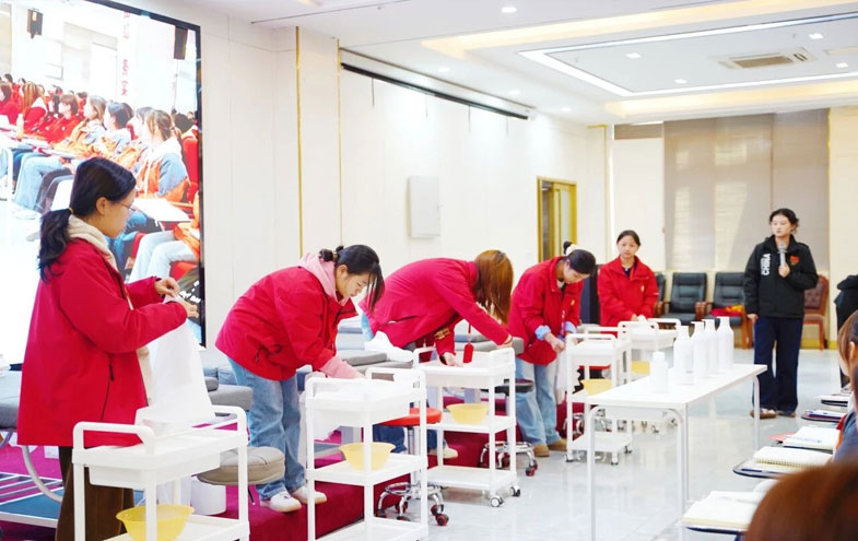 全国美容美发行业技能竞赛冠军、美容二级技师——张馨月老师莅临贵州新东方烹饪技师学院,为我校学子带来了一场集“理论、演示、实践”于一体的美容专业大师课堂。活动现场气氛热烈,学子们收获满满,不仅拓宽了美业新视野,更点燃了精进技能的无限热情。