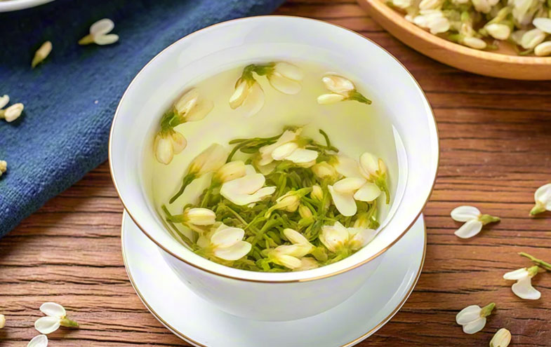 干槐花放入杯中或茶壶,用80度左右的温开水冲泡,盖上盖子,静置3-5分钟。
