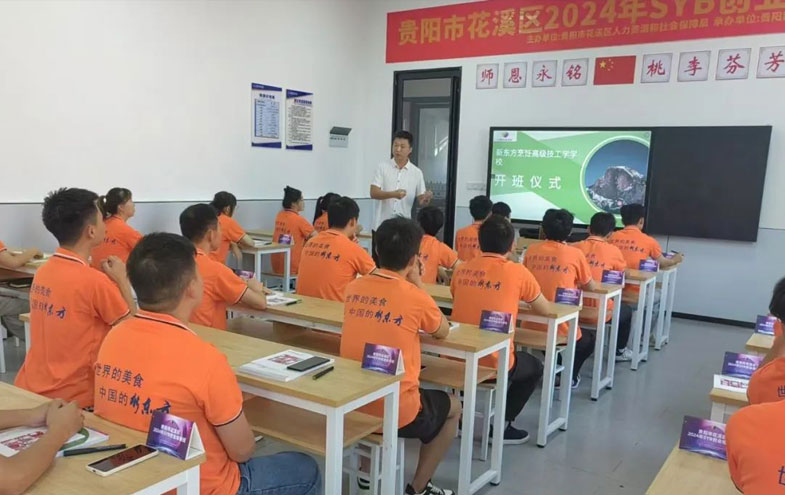 今天,由贵州省贵阳市花溪区人社局主办、贵阳新东方烹饪高级技工学校承办的贵阳市SYB创业培训(2024年第二期)由今日起正式开启,此次参加培训的是短期创业班级学子,共计60余人,学校特邀SYB创业专业培训讲师吴超、陆哲民走进校园为我校学子开展为期10天(9月5日—9月14日)的培训课程,今天起顺利开班,同学们表示非常期待接下来的学习内容。