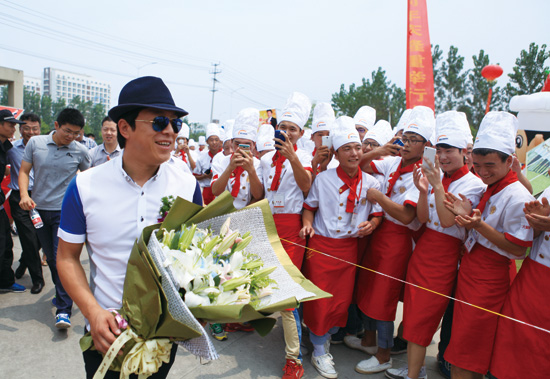 作为新东方烹饪教育的形象代言人,黄渤用这种草根精神在新东方的校园里传递正能量,让一批又一批新东方学子怀揣梦想,砥砺前行。在众多新东方烹饪学子中,有很多跟黄渤有着相似经历的人,在他们中有的打过工,有的当过兵,有的刚出校园,还有的从事过其他工作,但他们都有一个厨师梦,带着这个梦想,像黄渤一样,用勤劳的付出将梦想灌溉。