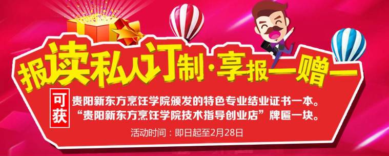 三、活动期间,报名私人订制专业的学员学习结束均可获得贵阳新东方烹饪学院颁发的特色专业结业证书一本。