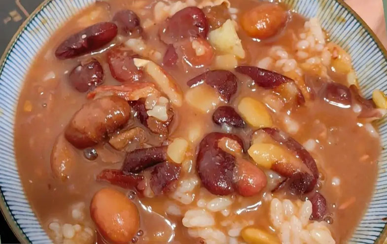 酸汤鱼以酸辣酣畅之姿强势征服食客味蕾,丝娃娃凭借清爽灵动的姿态勾勒出巧思妙意,肠旺面依靠浓油赤酱的醇厚撑起早市的热闹喧嚣。而豆米火锅,则是隐匿于市井巷陌与寻常人家餐桌之上的“温情担当”。它没有张扬夺目的个性,却凭借一碗慢炖至出沙的芸豆,将山野的质朴本真与家的温暖慰藉熬煮成绵长的滋味,成为每个贵州人离家后最魂牵梦绕的“乡愁味道”,也让初尝者在那一口醇厚的豆香里,读懂贵州饮食文化中“慢与鲜”的独特哲学。